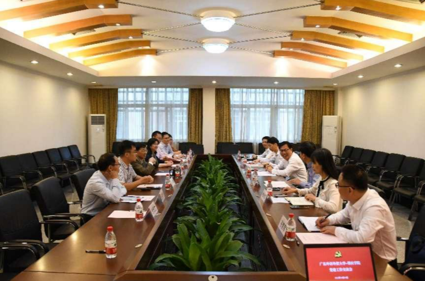李云明代表学校对肇庆学院同行的到来表示欢迎,他介绍了我校近年来办学治校的成绩和特色,并表示希望两校不断加强沟通联络,资源共享,携手提升。谢冠华表示,肇庆学院在新时代推进新师范教育、新工科建设等方面有不少探索,希望借助广外经验促进发展,也希望两校加强交流合作,共享共进。