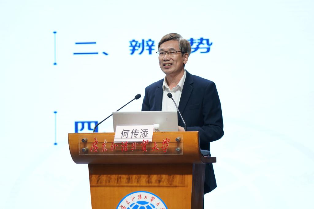 何传添指出,面对发展机遇和挑战要明现状、辨大势、定思路、谋发展。他阐述了学校学科建设概览及主要成效,国家对高等教育和学科建设工作提出的新要求,他提出要全力推动外语学科“冲一流”,引领大学高水平学科建设,大力推进主干学科与外语融合发展,以国际化特色突围,加大“五大交叉学科群”建设,在融合发展中催生新的学科增长点。