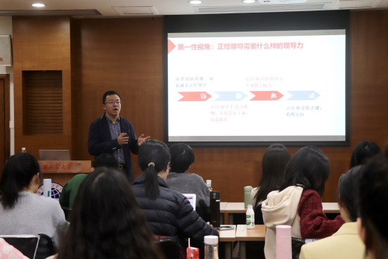 广东恒昀资本首席研究员,和烨管理咨询执行董事、首席研究员,同文教育集团首席战略官方华老师作题为《应用第一性原则强化领导力锻炼》专题讲座。讲座上方华围绕领导力中的第一性展开讲解,讲解过程中还穿插了影视片段作为例子来分析。他鼓励在场全体学生骨干要注重提高个人的综合素质,在学习和工作中不断提升自己的领导力。