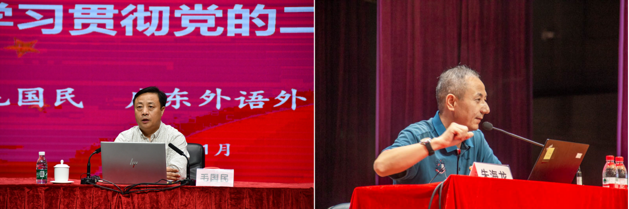 高级翻译学院党委书记李和民、经济贸易学院党委书记朱珍葶作《中国共产党章程》解读,从学习党章的目的和意义出发,重点解读党章的内容,深刻阐发党章与时俱进的优秀品质,详细阐明“尊崇党章,践行党章,牢记使命”的要求。