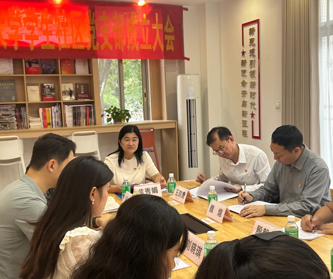 为深入贯彻落实党的二十大精神,推动党建与思政教育、社区治理、专业育人深度融合,2025年10月28日下午,广东外语外贸大学学生社区党支部成立大会在白云山校区云山学3栋党建文化室顺利举行。校党委常委、组织部部长黄秀娟、机关党委书记王则唐、学生工作部部长国佳、组织部及学生工作部相关老师及社区学生党员代表参加大会。会议由学生工作部副部长侯运男主持。