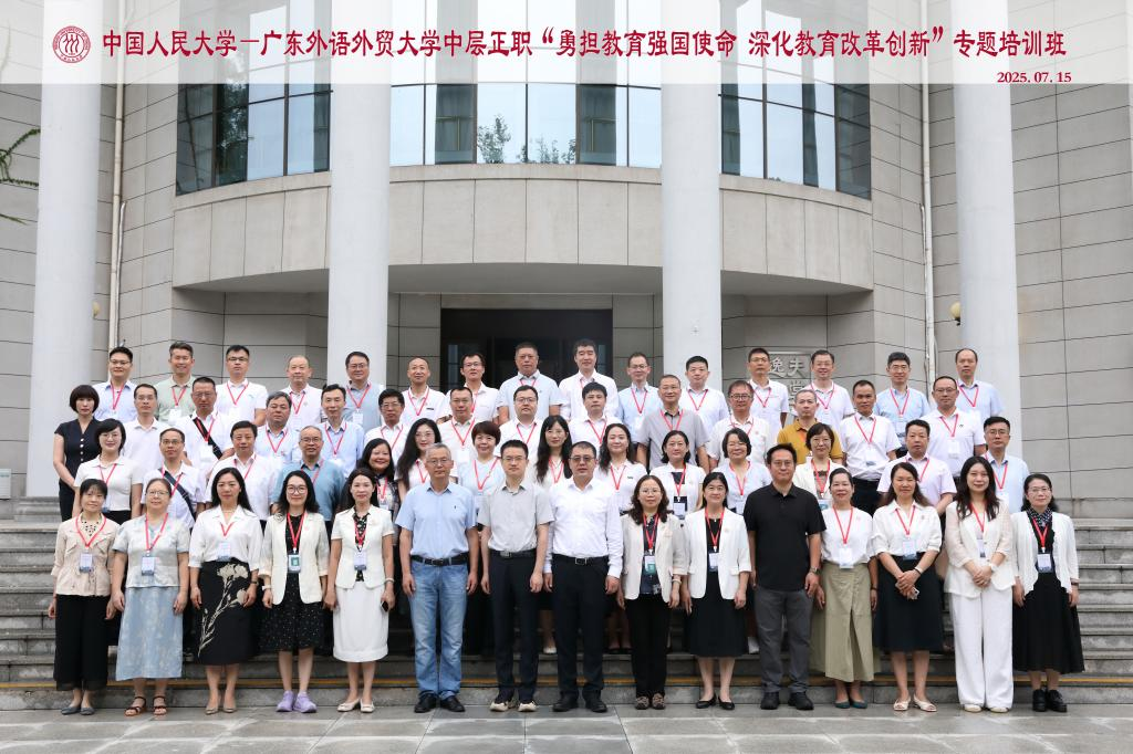 本网讯 为深入学习贯彻习近平总书记关于教育强国建设的重要论述,提升我校中层干部政治素养与改革攻坚能力,7月14日至19日,我校在中国人民大学举办中层正职“勇担教育强国使命,深化教育改革创新”专题培训班。校党委副书记、校长闫相斌赴中国人民大学看望全体学员。校党委常委、纪委书记、广东省监委驻学校监察专员温燕欢,中国人民大学历史学院党委书记吕学明、院长胡恒出席开班仪式。